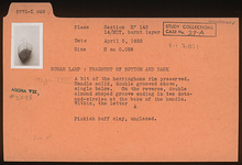 Description:   Fragment of bottom and back. A bit of the herringbone rim preserved.