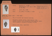 | Context: | Rectangular pit east of opening into "Roman drain". Found together with L 898, L 908, P 1894 and P 1895; also coins of 20th. and 26th. of April. | |