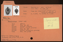 | Description: | Discus broken; rosette on it. Handle, solid, triple grooved. On bottom, double concentric grooves. Red glaze. Red clay. Type XXVIII of Corinth collection. ADDENDA For rim and nozzle cf. Corinth IV, ii, p. 103, fig. 48, no. 2; p. 105. fig. 49, no. 4. | |
