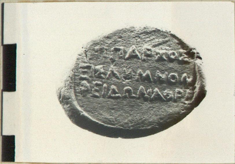 | Description: | Intact. Obverse: inscribed. It has three lines of text made of an ovoid seal. Reverse: parallel striations (traces of the object-wood (?) against which it was affixed). Pink clay. Similar to MC 1164 and from seal 1-type II B. Cf. MC 1187 for the text of the inscription. <graphic> | |