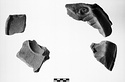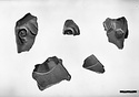 | Description: | Both fragments broken all around. Mold for a protome. a) Lower part of right side of neck and top of garment. Back of mold smooth with handprints. b) With fragment no. T 4052 are parts of another mould, probably come from the same archetype. Soft micaceous light orange clay. | |