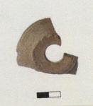 | Description: | Missing about two-thirds of rim and wall and part of central knob. Slightly conical support with plain rim. Pierced at center, with broad, flat area, inwardly beveled, surrounding hole. Hard, fine, somewhat micaceous fabric, light reddish brown (5 YR 6/4). A few fine dark inclusions. | |