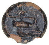 | Description: | A: in relief a nude woman right, seated on prow of a trireme. B: plain. Black glaze. | |