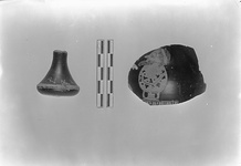 | Description: | Intact save minor fractures. Around the upper part an inscription, roughly incised. Black glaze all over, except where worn off at edges. <graphic> | |