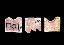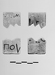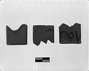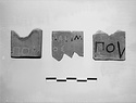 | Description: | Intact. Inscribed, rectangular, but with toothed lower edge. The inscriptions in black glaze, much flaked. On one side: H Α Λ Ι Μ Ο Σ On the other side: Λ Ε Ο [ Ν Τ Ι Σ ] Traces of red wash on both faces and on all edges, including those of teeth. <graphic> | |