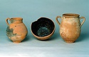 Buff clay. Pale buff slip. The inside of the pot is covered with a well preserved coat of mastic, black in color and filled with bubbles large and small.