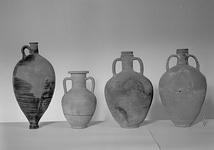 | Description: | Mended from several pieces; fragment of body missing. Ring foot; wide straight neck; projecting lip with vertical edge; "double" handles, from middle of neck to shoulder. Buff clay. Light buff slip. | |