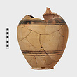 | Description: | Handles and practically everything above shoulder missing. Fabric and decoration as P 10185 (Φ 411). ADDENDA P 10185: On shoulder: concentric semicircles, between which two vertical zigzag lines. Body reserved, except for broad black band between narrower ones, below semicircles, and three narrow black bands lower on body. | |