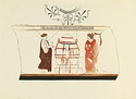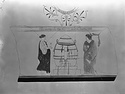| Description: | Cracked open; repaired; one or two chips missing at edge of breaks. In center, grave monument. From the left a woman brings an alabastron. On the right a woman(?) with mantle drawn close around her, looks left. Shoulder also white ground with open palmette pattern, bordered above by tongue pattern; just below shoulder, maeander. Drawn in a pinkish-gray matte line, the same color used for the hair. Light bright red for fillets on tymbos and stele and for cloak of figure to right. Dark red for cloak of figure to left, and pink lines for folds of her chiton. Matte black for one of the fillets on the tymbos, for the folds of the cloak, and for strings hanging from the fillets. Gray of maeander and shoulder pattern not pinkish. Above and below maeander, and below picture, yellow glaze stripe. | |