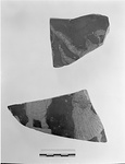 Description:   Two fragments from the walls of a red figure krater. A Victory crowns a figure on a pedestal.