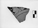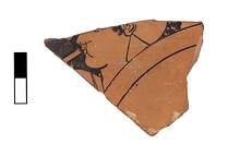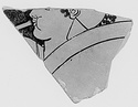 | Description: | Fragment from wall of a krater, broken all around. Part of the head of a trumpet player to left, wearing crested Attic helmet and round shield; his trumpet to his lips. Relief contours throughout; rim of shield marked by both a painted and an incised line inside and out; the latter having red miltos in its bottom. | |