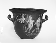 Laurel wreath on rim; egg and dot around handles; double palmette ornament between handles and beneath; lower border, on A, dotted checkerboards; on B, dotted X-squares.