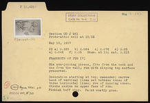 | Description: | Six non-joining pieces, five from the neck and one from the wall; rim with sloping top surface preserved. Decoration starting at top; maeander; narrow band of vertical lines set between zones of three horizontal lines; row of dancing women. Stroke series on upper face of rim. Pinkish-buff clay. Paint mostly gone. | |