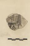 | Description: | A chip without the inner face preserved, from a fairly large pot. Horse, right; zigzags in field, lozenge underneath. Pinkish clay; firm brownish-black glaze. | |