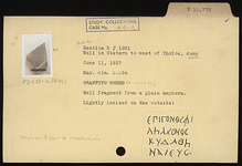 | Description: | Wall fragment from a plain amphora. Lightly incised on the outside: <graphic> | |