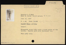| Description: | Intact. Elongated ovoid body with a blunt spike at the bottom. Narrow neck with thickened lip. Thin gray slip. | |