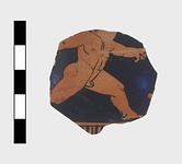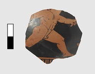 Description:   Wall fragment broken all around. A nude boy running right with something held in his outstretched left hand. Head missing.
