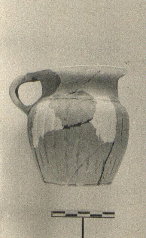 | Description: | Similar in shape to P 10980 (ΠΘ 2900), but the body unusually deep for its width, and the sides steep. Fragments of rim and wall missing; restored in plaster. On body, plain ribbing, or rather, grooves. Dull red glaze over all, much peeled; the fabric soft. Cf. Agora XII, no. 214. | |