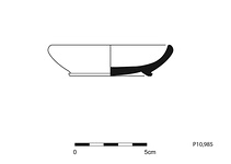 | Description: | Similar to P 10984 (ΠΘ 2904), but shallower. Reserved beneath, with circles and dot. Glaze dull and black to reddish-brown. Cf. Agora XII, no. 874. ADDENDA P 10984: Similar to P 10983. P 10983: Ring foot and shallow body with plain rim. Reserved center, with circles, beneath. | |