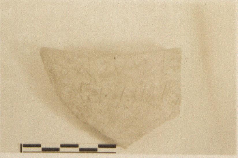 | Description: | From a coarse amphora. Incised on outside: <graphic> Orange-red clay with light slip. | |
