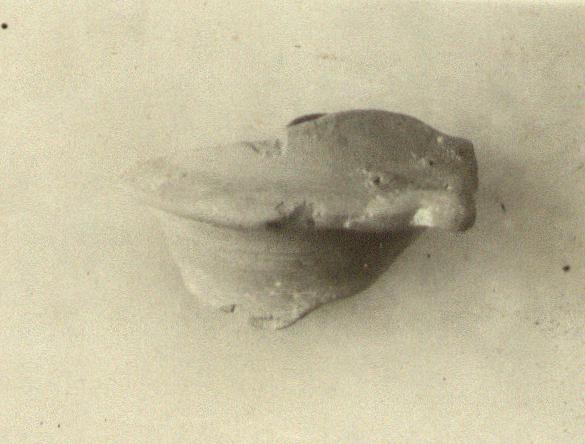 | Description: | The projecting rim, pierced with two holes, has also a small horizontal, lug-like handle attached. Buff clay. Unglazed. Traces of white paint. | |