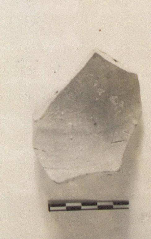 | Description: | Fragment from lower neck. At curve is carefully incised: <graphic> Coarse purplish-pink clay. | |
