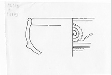 | Description: | Two joining fragments preserve part of the rim of a keel-rimmed bowl, with white spirals on exterior. Rather flaky red glaze on interior and on exterior below rim. Late Roman D Bowl. | |
