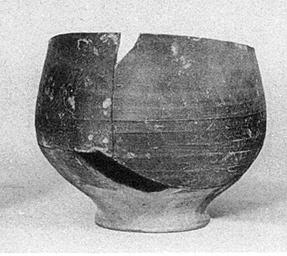 | Description: | Rim entirely missing; also some of body. Ring foot; body broader below than above. Good red glaze on inside and on outside down almost to ring foot; hence probably an open bowl, perhaps with flat-topped, out-turned rim. | |