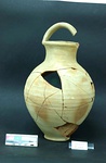 | Description: | Part of handle and some of body missing. Restored in plaster. Moderately high neck; ridged basket handle. Buff clay. Light buff slip. ADDENDA Broken in earthquake, 7 Sept. 1999. | |