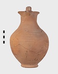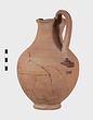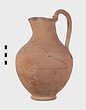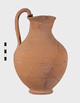 Description:   One side of mouth missing; otherwise intact. Ring foot; body and neck form continuous curve; high ridged handle. Groove around body at lower handle attachment.