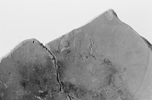 | Description: | Part of base and lower side wall preserved. Low base ring; flaring wall. Line of break indicates inset rim. Traces of stamp in center of floor: possibly rosette. Glaze red to black. Samian A. | |