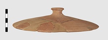 | Description: | Much missing; restored in plaster. Slightly domed lid with a hollow knob on top. Micaceous buff clay; unglazed. Cf. Agora XXXIII, no. 723. | |
