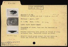 | Description: | Fragments of floor, base and rim restored in plaster. Moulded base ring with groove on bottom of ring; upturned rim. Rouletted circle on floor. Metallic black glaze except for red-brown on floor and bottom due to stacking in kiln. | |