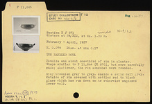 Description:   Handles and about one-third of rim restored in plaster. Shape similar to P 11844 (Χ 870), but more carefully made; shallower, the rim somewhat more rounded.