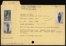 | Description: | Most of rim, base and pieces of walls restored in plaster. Probably low base ring; slender body; small cylindrical neck; plain rim. Shallow wheel grooves on sides. Yellow to pinkish-buff clay. | |