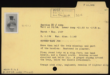 | Description: | More than half the body missing and part of the handles. Restored in plaster. Plump round body on a ring foot; one band handle, and high funnel mouth. Grooves around shoulder and below lip. A gouged zigzag around the body, below the handle attachment. Orange-pink clay, unglazed; remains of lighter slip. | |