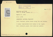 Description:   Neck fragment. Glaze bands along top and bottom; a large long-necked bird walks right in figure zone.