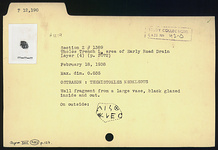 | Description: | Wall fragment from a large vase, black glazed inside and out. On outside: <graphic> | |