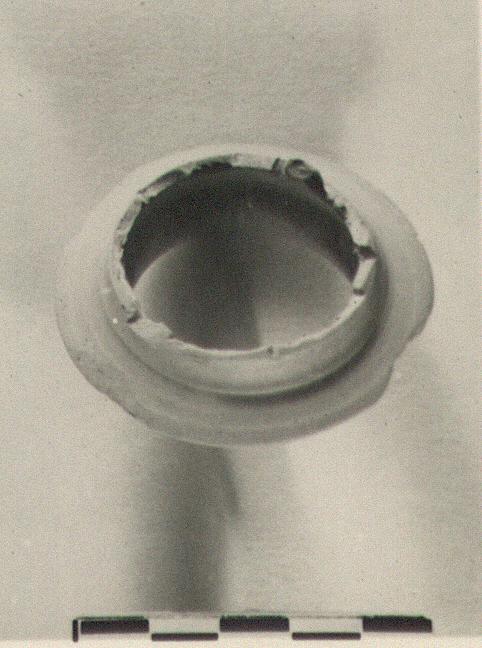 | Description: | The whole dome broken away, but traces of cut-out decoration remain. Fine pinkish-buff clay, traces of white paint. | |