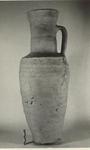 | Description: | Projecting base ring broken away; one handle and piece of lip missing. Slender body with broad wheel grooves; short angular shoulder, straight neck flaring slightly to lightly collared rim; handles well below lip to shoulder. Dipinto in red on shoulder: <graphic> Highly micaceous russet clay. Remains of light slip. Cf. P 12353. | |