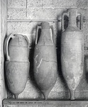 | Description: | Intact. Tall slender cylindrical body, tapering below to long heavy flat-bottomed toe. Upper wall forms angle with shoulder; straight neck, echinus lip; double handles, below lip to edge of shoulder. Light red clay; heavy fabric. Capacity: 31390 cc (VG, 14 August 1956). | |