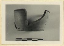 | Description: | Fragments missing from the wall. Flat base, steep side wall; flat rim with slight out-turned projection. Flaky black glaze on inside only. A brown line just below the lip outside. | |