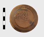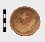 | Description: | Intact. Shallow open saucer with flat bottom, roughly cut from the wheel. Lightly scratched on the floor: <graphic> Thin brown glaze inside and out. | |