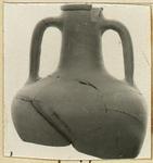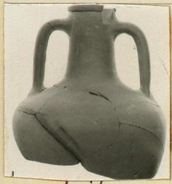 | Description: | Neck of amphora with one complete handle; piece of rim missing. Rolled rim, below which, red band. Dipinto in red high on neck: <graphic> Orange-brown micaceous clay. ADDENDA The handle completed and much of the upper wall added from sherds. The vase has now both handles, most of the shoulder and part of the body below the shoulder (2 August 1976). | |