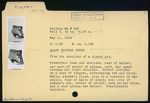 | Description: | Shoulder fragment. Depicts head and shoulder, most of helmet, and part of shield of Athena, left; her spear crosses her right shoulder. Helmet intrudes on a band of tongues, alternating red and black. White for Athena's flesh, wing of a creature on the shield, tips of hairs of crest; red for iris of Athena's eye, border of shield; dots on her dress, and a band across her helmet. Considerable incision. | |