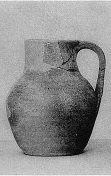 | Description: | Half of lip and large piece of front missing. As P 12731 (Ω 598), except band of very fine lines replaces grooves. Gritty red clay. High-necked, flat-bottomed jug. ADDENDA P 12731: Flat bottom; short shoulder; wide slightly tapering neck, flaring lip. Shallow grooves around neck; knob for thumb on top of grooved strap handle, from lip. | |