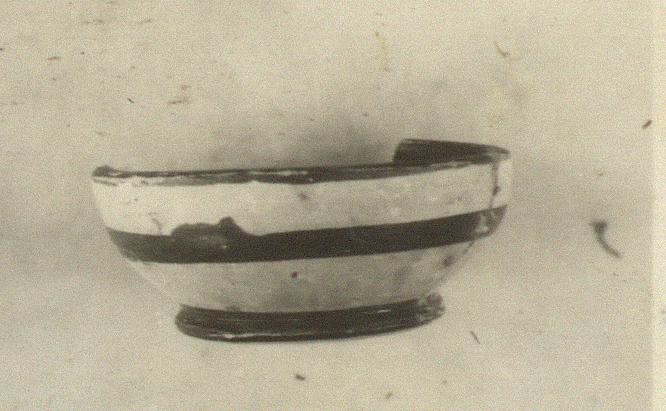 | Description: | Mended from two fragments; about a third of the rim missing. Interior covered with black glaze. Flat underside unglazed. Sides incurve slightly . The bowl is not quite round. Cf. Agora XII, nos. 737, 745. | |