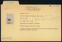 | Description: | Handle missing except for stump. A small open bowl with flat bottom and one horizontal handle. Unglazed. Exterior polished. | |