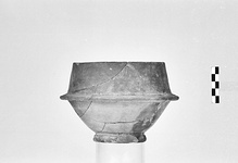 Description:   Part of the wall and rim missing. Ring foot and convex lower body; a projecting keel where the lower body and straight inward-tilted rim meet.