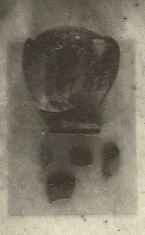 | Description: | Many fragments join to form largest fragment. In addition, one large non-joining fragment gives most of the base and there are four others, non-joining. Surface badly pitted and worn. The panel is bordered above by a tongue pattern, on the sides by a double row of dots joined in zigzag, on the bottom by a narrow band of red. The scene depicts an armed warrior in the center, woman to left facing him. A second woman on his right is turned right (head, shoulders and feet missing). White for flesh of women and the device on the shield (octopus). Red on the helmet, greave-edge, and in dots on the garments. Incision for interior details. | |